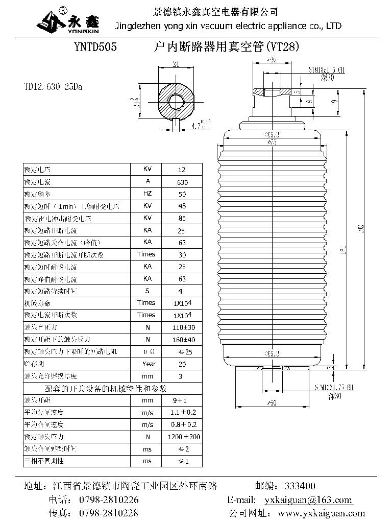 YNTD505户内断路器用真空管VT28